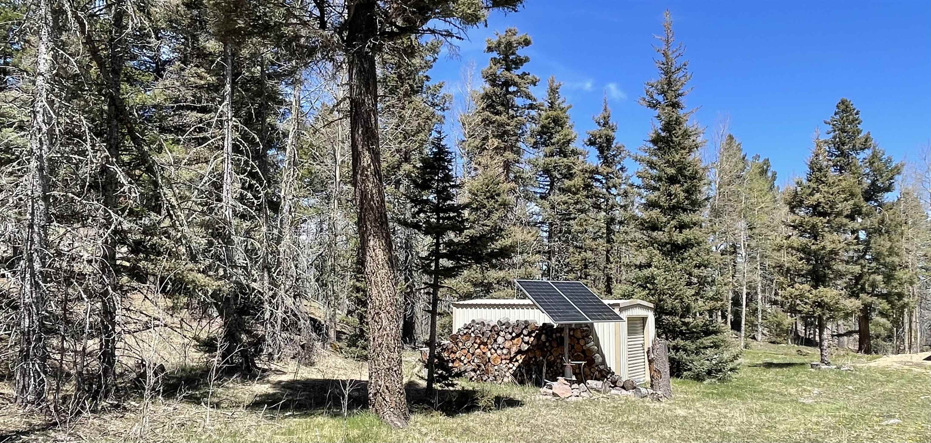 This 14.17 acres parcel in spectacular Hidden lake offers underground electric, phone and fiber optics. There are two entrances to this parcel A small RV pad on the upper lot with a 12x16 storage shed and another pad on the lower part of the lot with lot of room to easily drive in and turn around with trailers. This parcel is all set up to bring your RV 120 days per year! There is also a new pump for the well that can run off 120v or the installed solar array! thoughtful covenants protect your investment. There is easy access to the 47 acre lake stocked with trout . A peek of Wheel Peak can be seen from the meditation rock cropping. A bigger view can be had with some tree clearing.