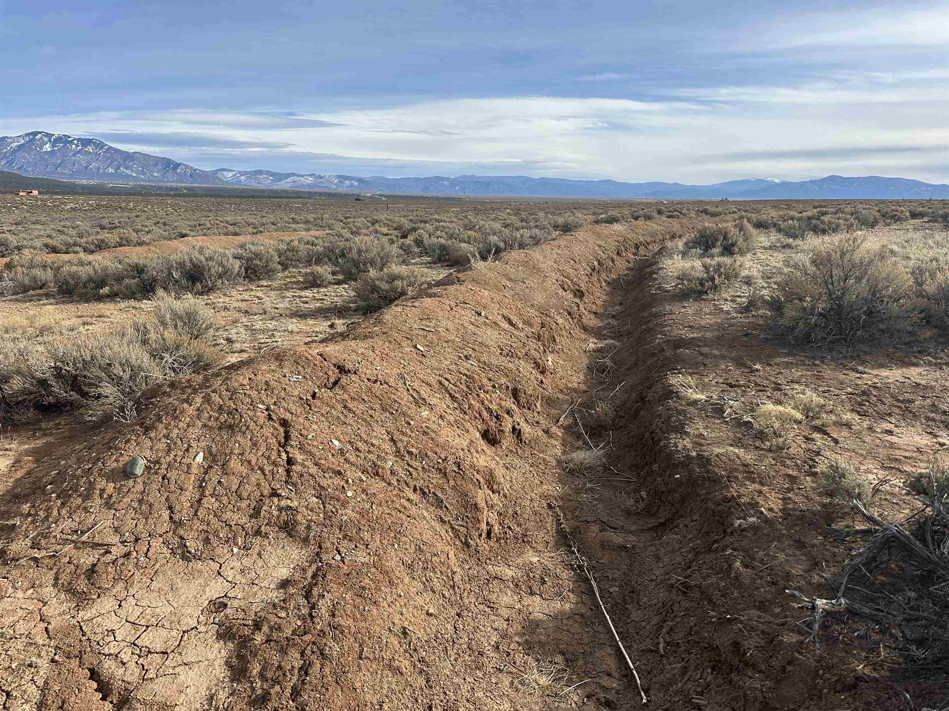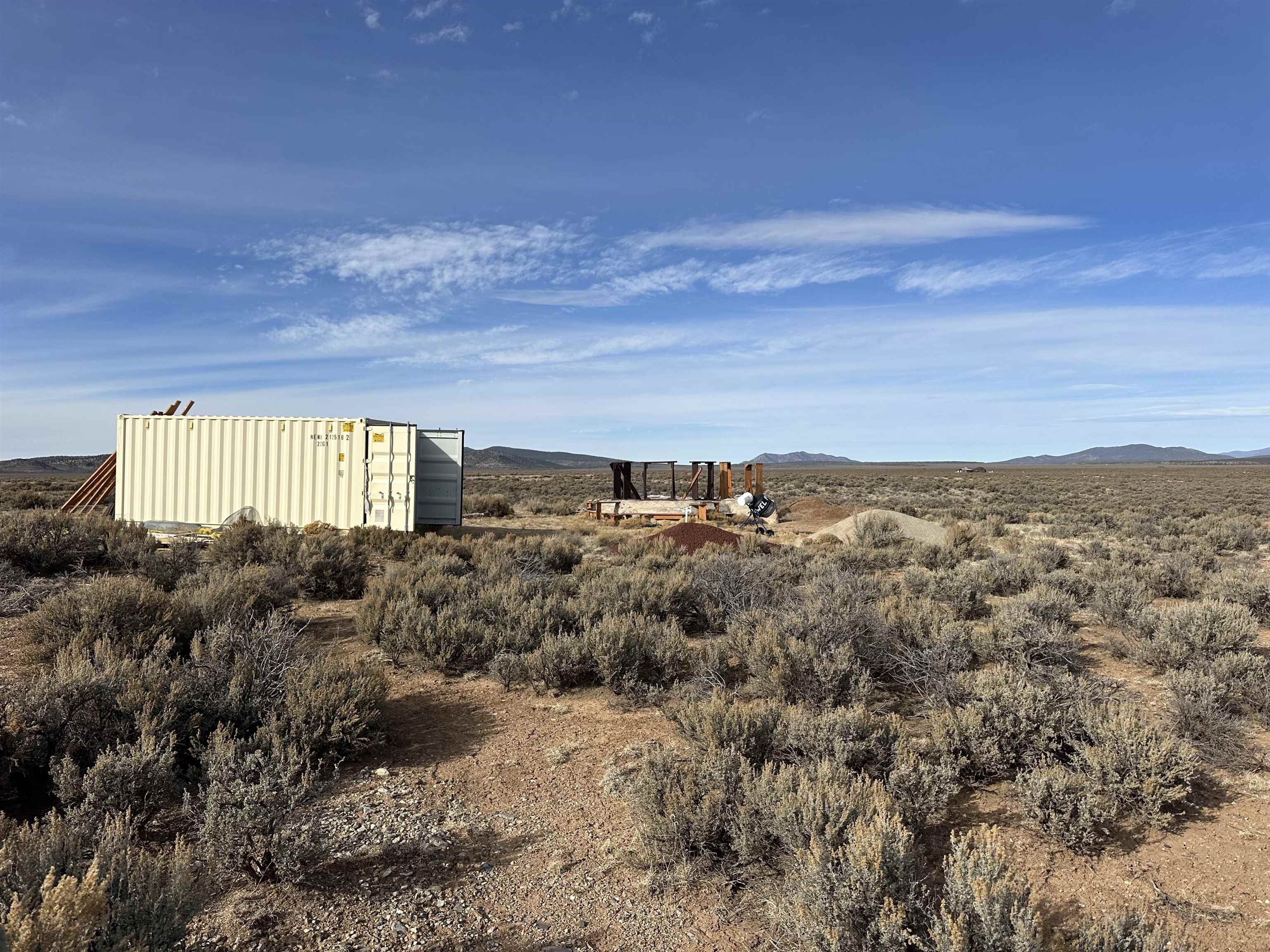 One of those gorgeous lots with 360 degree views going East over the Rio Grande Gorge to the Sangre De Christo Mountains and West towards Tres Orejas. Just minutes from Rio Grande Del Norte National Monument, and not far from the airport, this would be an amazing place to situate an off-grid home, the owners of which would enjoy amazing views, space, and super dark skies. Storage container included in the sale as well as large wind chimes. Swales have been excavated on the land following the gentle slope of the land to encourage moisture retention. A buried cistern is also on land near small unfinished structure.