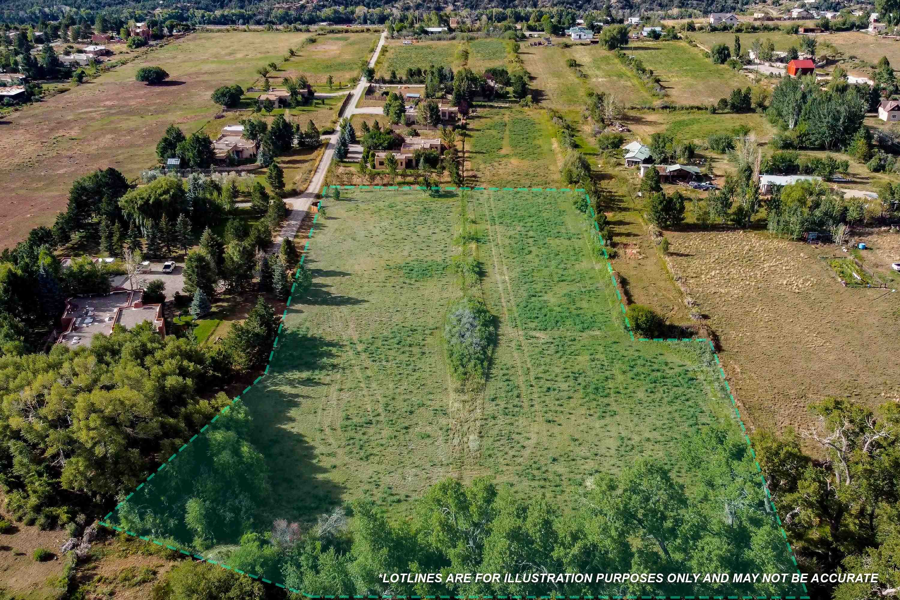 Nestled at the base of the Sangre de Cristo Mountains, this rare 3.068-acre property offers the perfect balance of privacy, natural beauty, and convenience. Fed year-round by the historic Acequia Madre and El Salto Creek, the land is richly irrigated, creating a sanctuary of towering cottonwoods, vibrant vegetation, and fertile soil. A private road leads you into this peaceful retreat, where expansive mountain views surround you in every direction. The property feels worlds away, yet is ideally located—just minutes from Taos Ski Valley and a short drive down the road to the charm of Arroyo Seco. Whether you envision a serene homestead, a mountain getaway, or a retreat immersed in nature, this property provides the canvas. With its combination of water, lush landscape, and unbeatable location on the north side of Taos, this is one of the most desirable offerings in the area.
