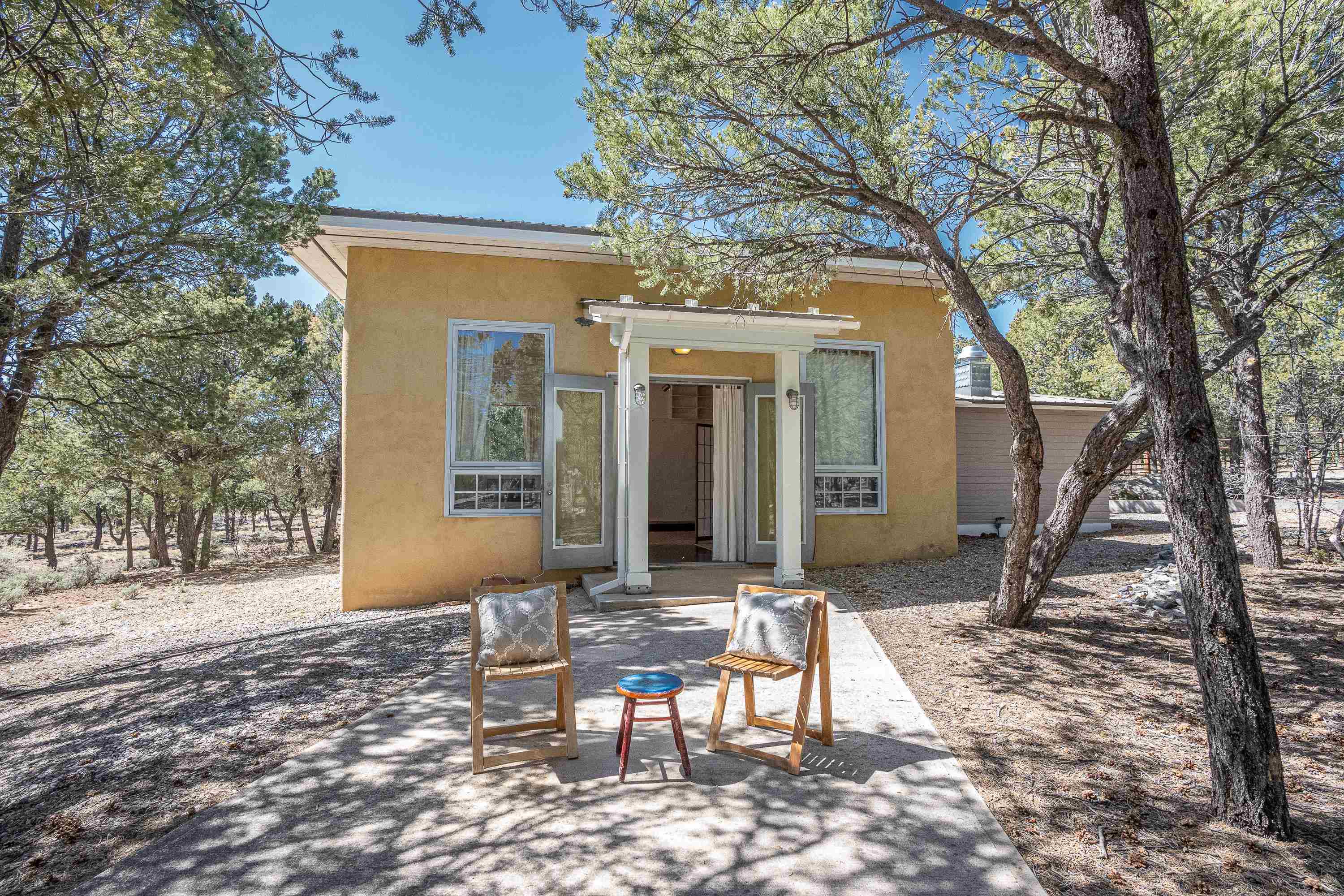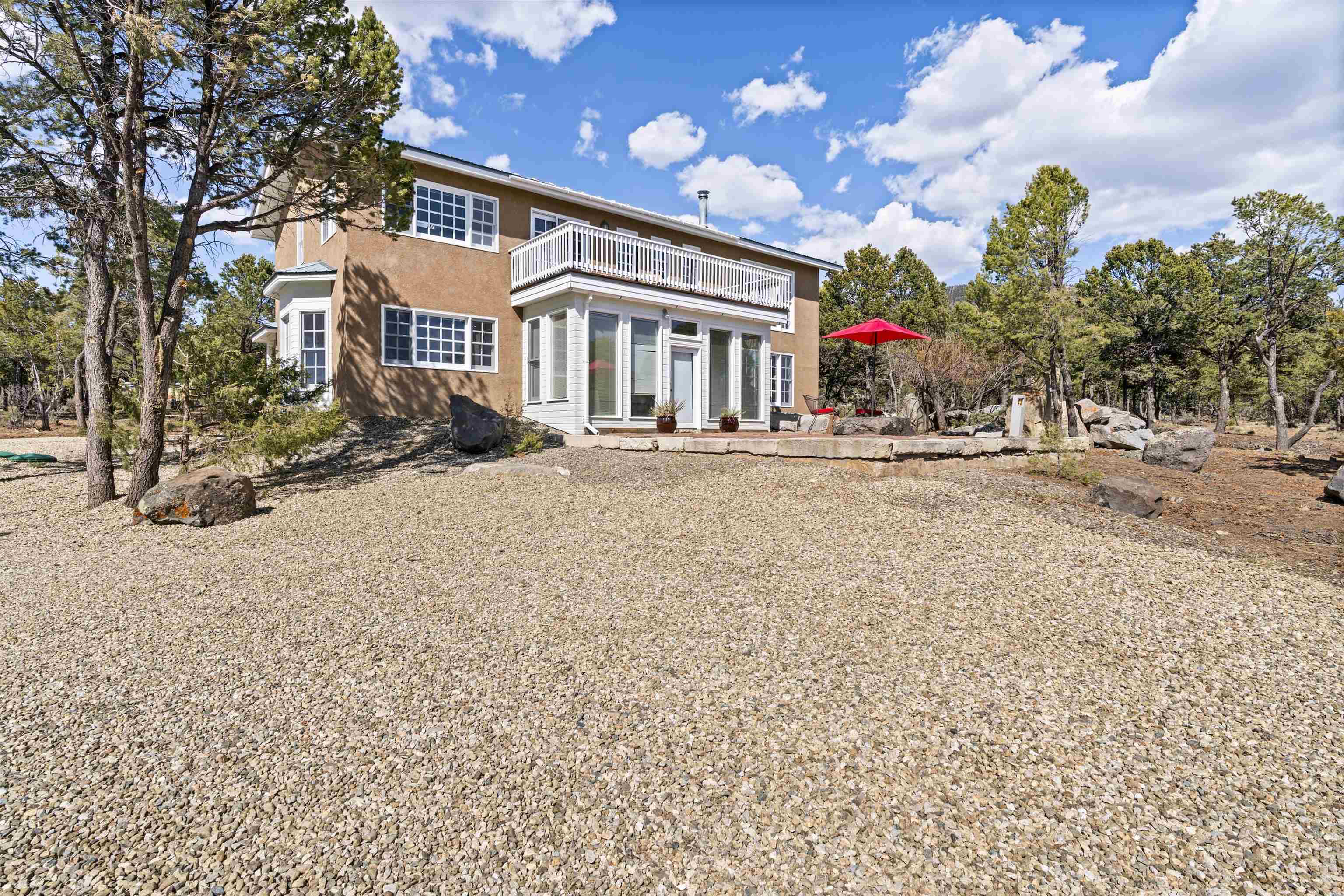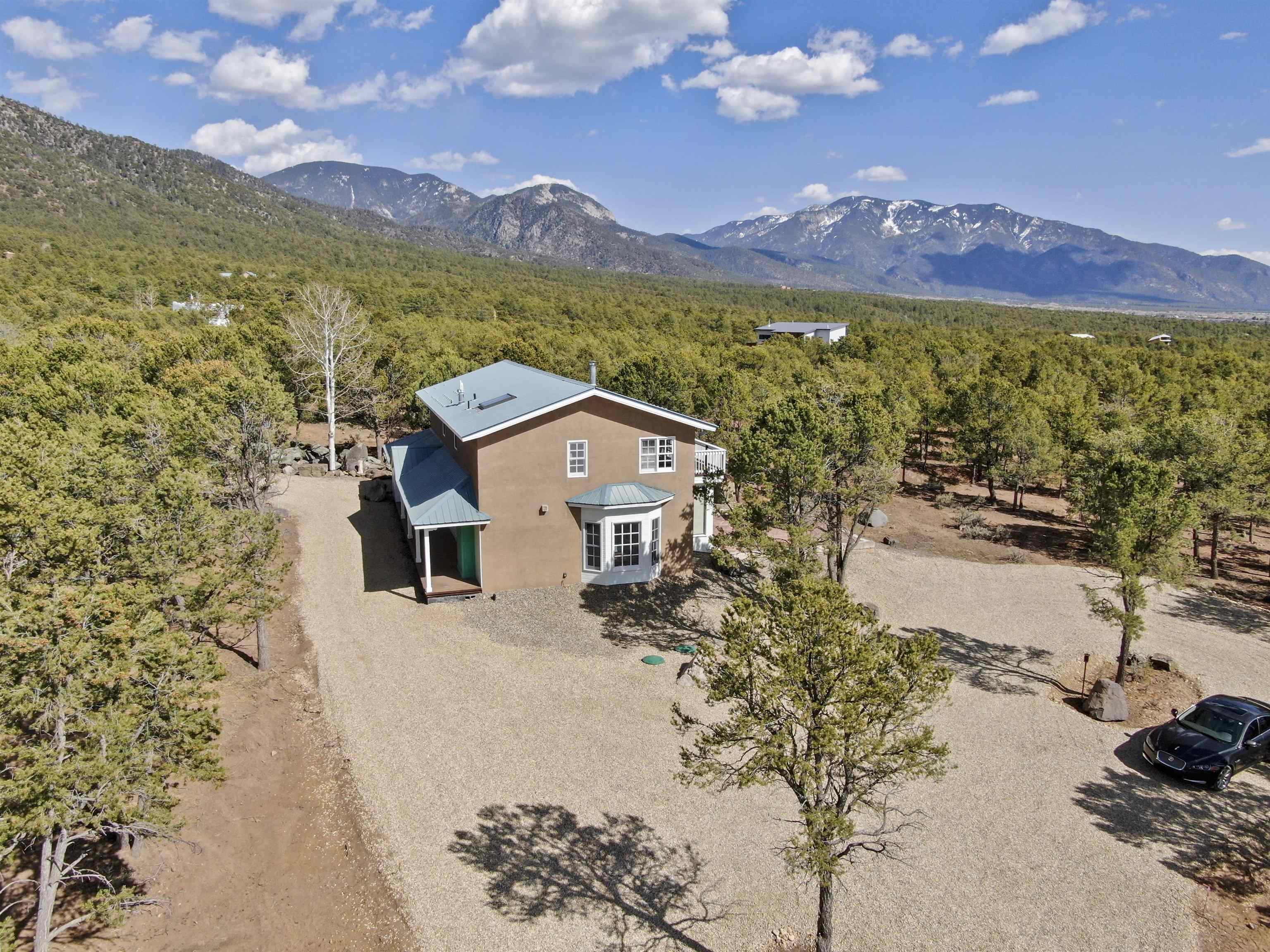 Retreat to your Retreat! This beautifully maintained 10.80-acre mountain property offers a rare blend of peace, privacy, and versatility— it's the perfect mountain retreat close to the Town of Taos and world-class outdoor recreation. There are two parcels, two well services and the ability to divide or expand. There is currently a two story main house, a one bedroom guesthouse, a large workshop building and a stable with corrals. The light-filled 2 bed, 2 bath main home is open and airy. The main level features an open kitchen and living space, complete with a wood-burning stove for those cozy winter evenings. The upper level features another bedroom and bath, bonus space for hobbies and an upper deck that delivers breathtaking, expansive views in every direction—sunrises, sunsets, and stargazing are all front-row experiences here. A separate 1 bed, 1 bath guest house adds even more value—perfect for visitors, rental income, or a private studio or office. It has a great kitchen with a commercial oven/range, a steam shower, excellent storage, a private entry and large windows that flood the space with light through the trees. The additional large quonset workshop, previously used for metal fabrication, holds endless potential for creatives, craftsmen, or anyone in need of functional space. It has plumbing and electric. With two separate access points, the property is ideal for trailers, RVs, or horse rigs. A true horse-friendly property featuring a stable, tack room and corral, with plenty of room to roam and close proximity to the Carson National Forest for riding and recreation. And when it’s time to adventure further, you’re just a short drive from Taos Ski Valley and the Rio Grande—offering world-class skiing, whitewater rafting, and trout fishing. The land has been carefully maintained and manicured to meet Firewise standards, combining natural beauty with added safety and peace of mind.