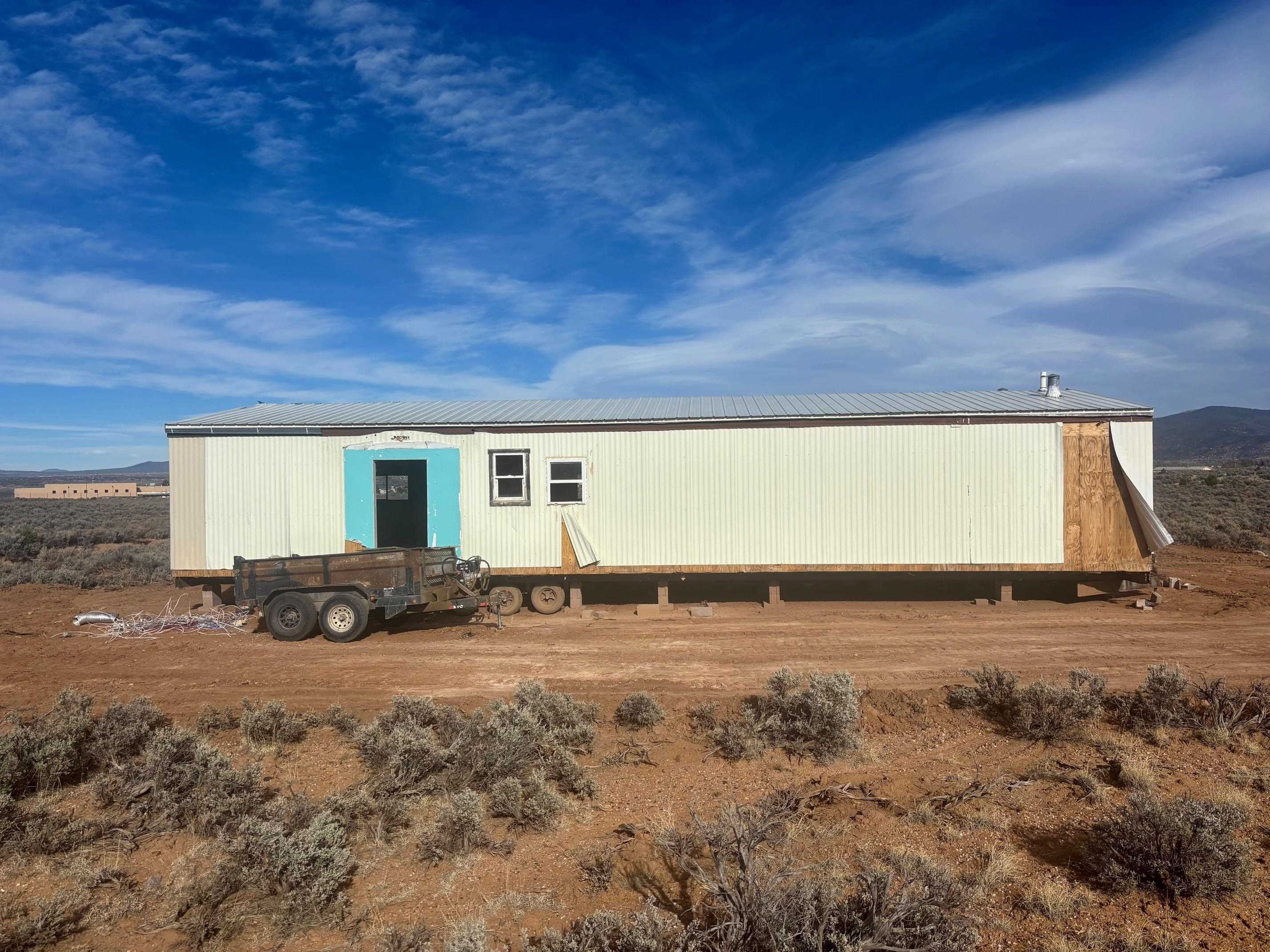 An affordable manufactured house that will be remodeled. House will feature 3 bedrooms and 2 bathrooms. Has amazing views of Taos Mountain. Pictures 1 to 4 are of the actual house being remodeled. Pictures 5 to 14 are of the last house builder remodeled to show his workmanship and do not illustrate how this house will actually look like. House can be completed in 12 to 16 weeks from going under contract.