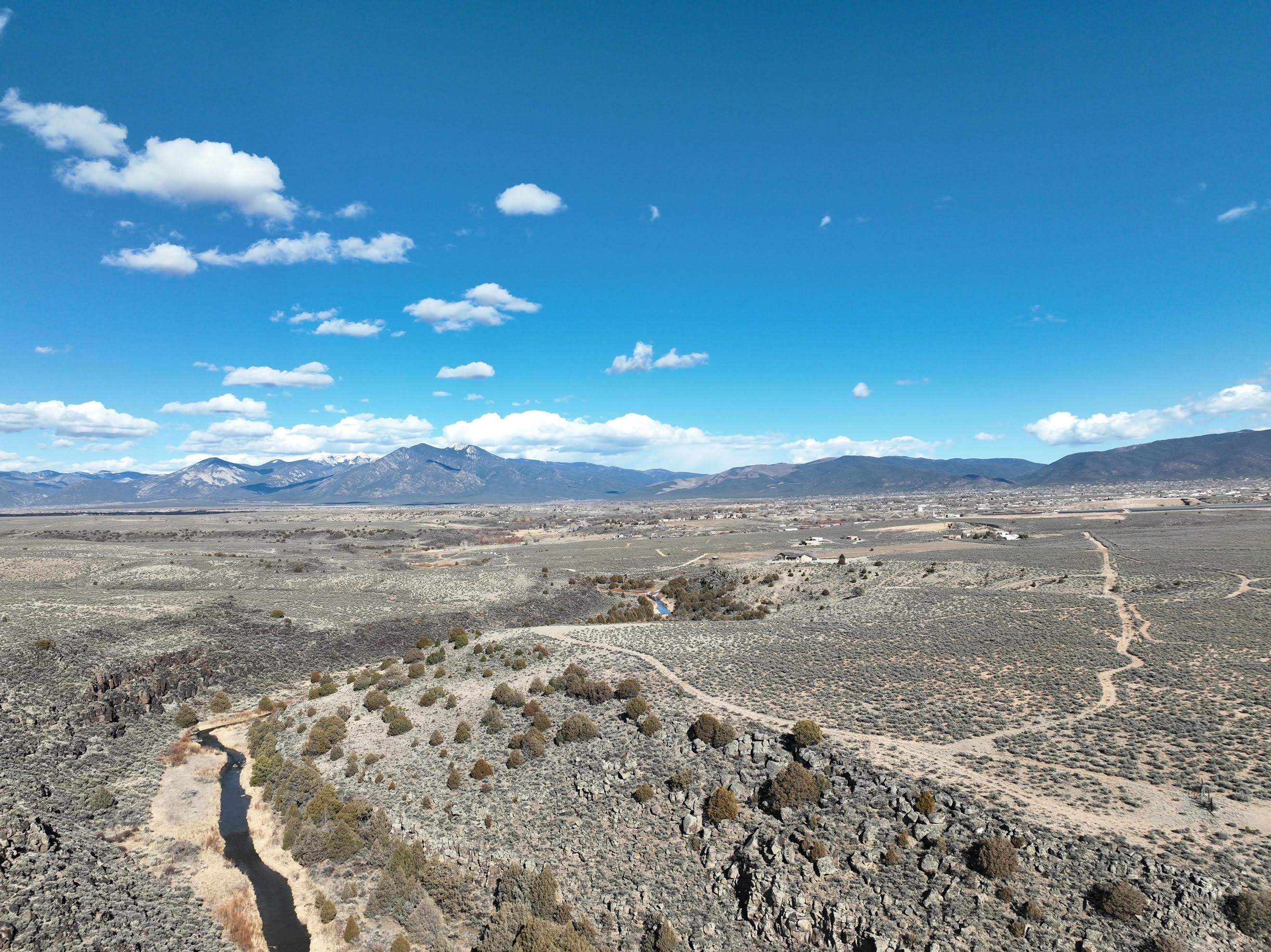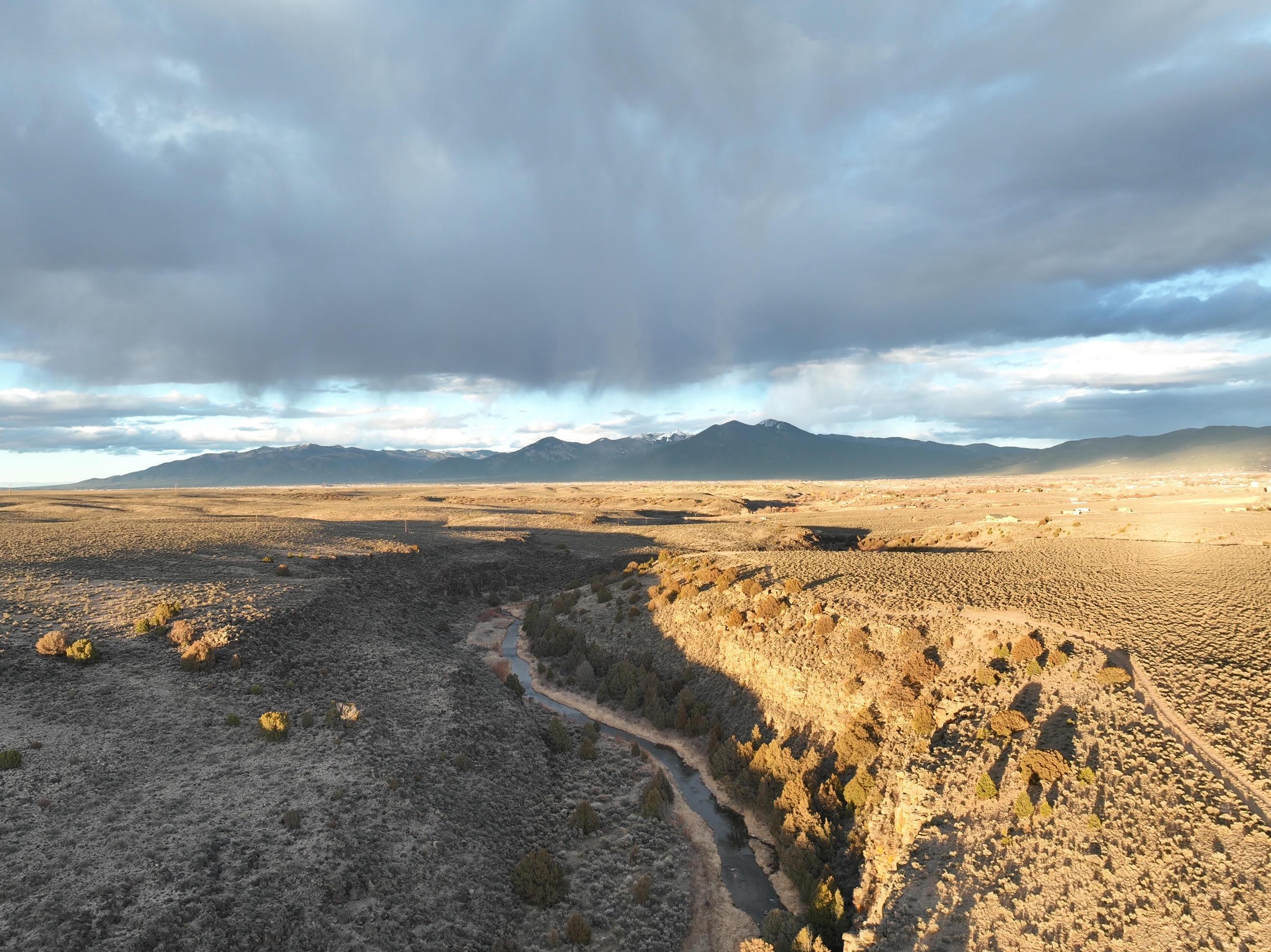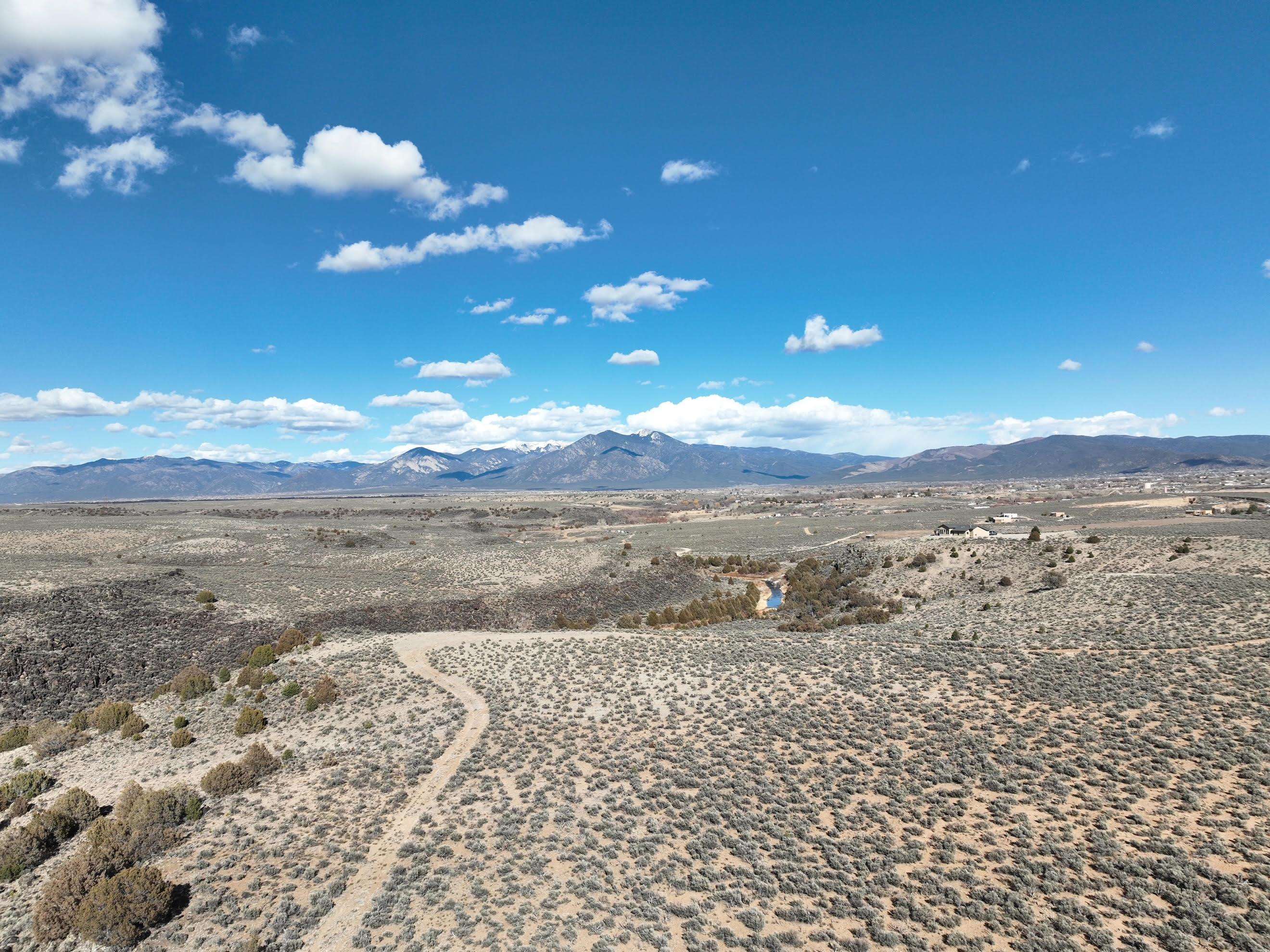 The Rio Pueblo runs through it! This is a fabulous 26+ acre parcel situated out on a promontory northwest of the Taos Country Club, in an area known as Orchard, and which borders Taos pueblo lands on its west and north boundaries. If you want to build your dream home, or a number of homes, in a seriously special and unique location in Taos, this is the place. This location offers privacy, dark stary-filled night skies, access to wildlife (big horn sheep for example), amazing hiking access down your own trails into the Rio Pueblo gorge which runs through and is part of the parcel itself, easy access down to the Rift Valley mountain biking trails and Slide Trail at the end of CR-110, not to mention huge views out over Taos town, Arroyo Seco, and Taos Mountain. Three permitted private water wells located in the area show water at around 130 feet or less. Do not miss this unique opportunity - these kinds of parcels do not present themselves often. Link to drone video footage: https://youtu.be/_9qvojTPP7A