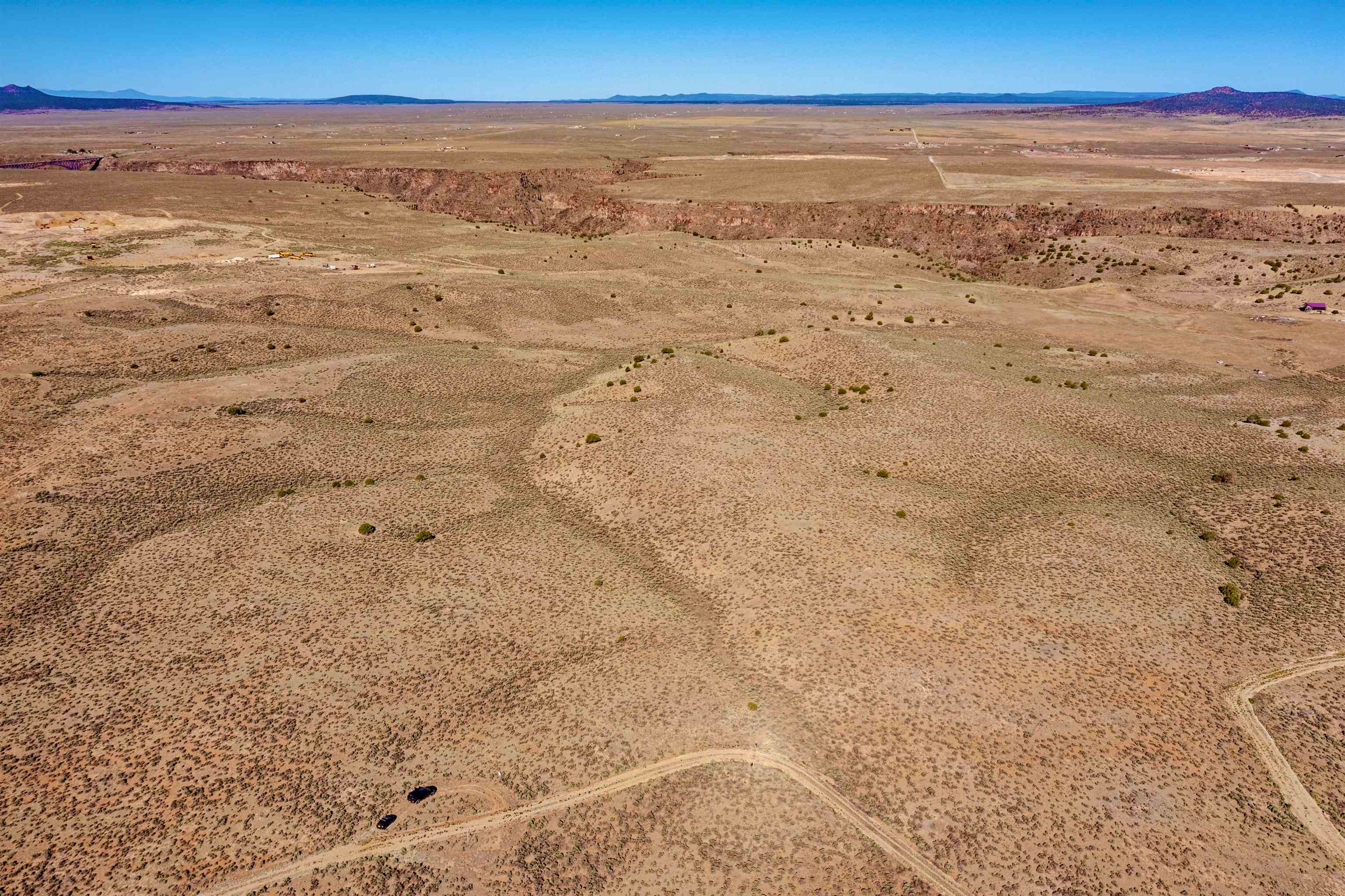17 acre parcel, with rolling hills, and killer views of the Rio Grandé Gorge, available for a personal homesite or tasteful residential subdivision. Unparalleled views of the Rio Grandé del Norte National Monument, Taos Mountain, breath taking sunsets and starlit nights. A unique slice of Taos Mesa paradise opens up to undisturbed views of the Gorge and gradually sloping topography, ideal for a small solar farm and enhanced privacy and seclusion, together with gracious Taos County building restrictions. Development of your liking (Territorial, South West or Off-Grid construction). Underground electric and phone utilities nearby, allowing for connectivity without disrupting the natural views. * Conveniently located adjacent to the Rio Grande del Norte National Monument, allowing quick access to Taos Ski Valley, Biking, Rafting and Fishing and the rich and colorful northern New Mexico culture. Unspoiled mesa location, surrounded by quiet and tasteful residential homes, located in Zone 4, suitable for construction of private residences and/or ABnB rental income development. * Possible 20 acres available, with well share included.