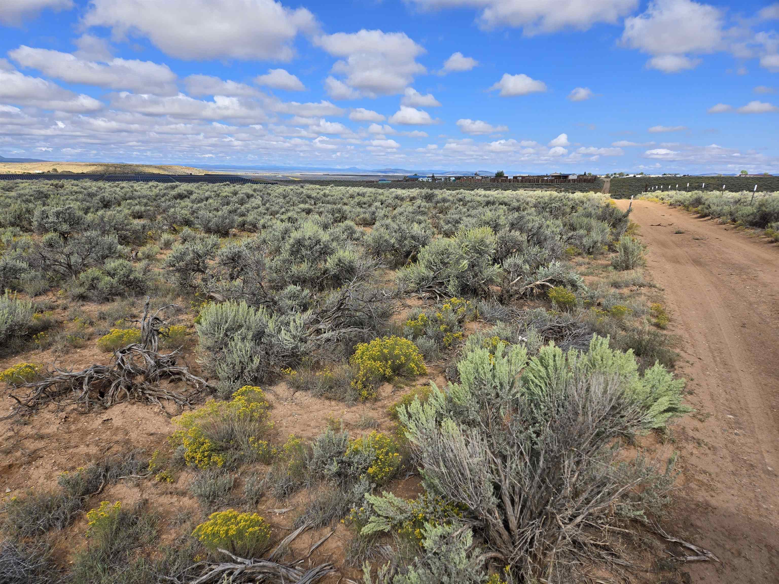 This property is a beautiful elevated lot on the north side of Taos in El Prado. Located not far beyond the end of County maintained Santistevan Road, It's about 1.7 miles off Hwy 64 West in the airport area on the South side of Hwy 64. Three adjacent lots are available currently, although with 3 separate sellers. This property overlooks Taos Mountain, nice homes to the east, and a large solar array to the west, which is a quiet neighbor.