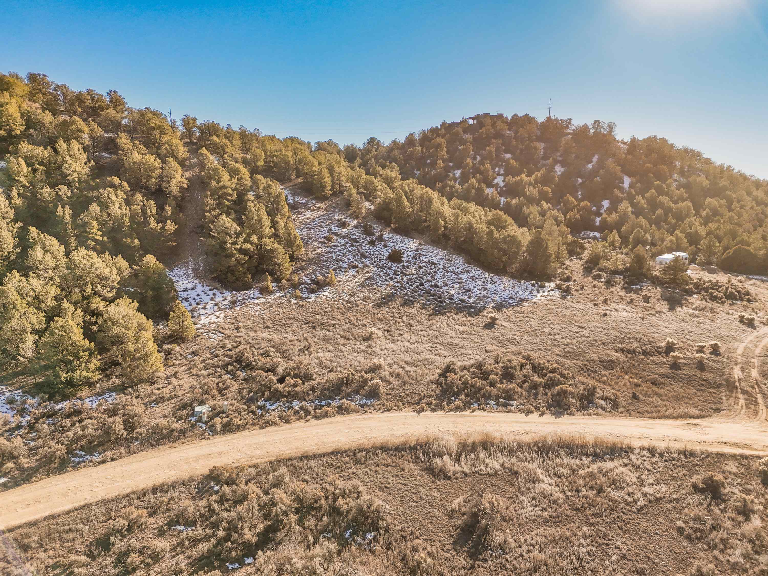 Beautiful north facing 3 acre parcel that starts just below the ridge and runs down the hill to the valley below with views of the Latir Peaks, Ute Mtn and San Antonio Peak. Secluded and well protected from the spring westerly winds this is the perfect spot to build your home. Electric and Fiber optic near the lot.