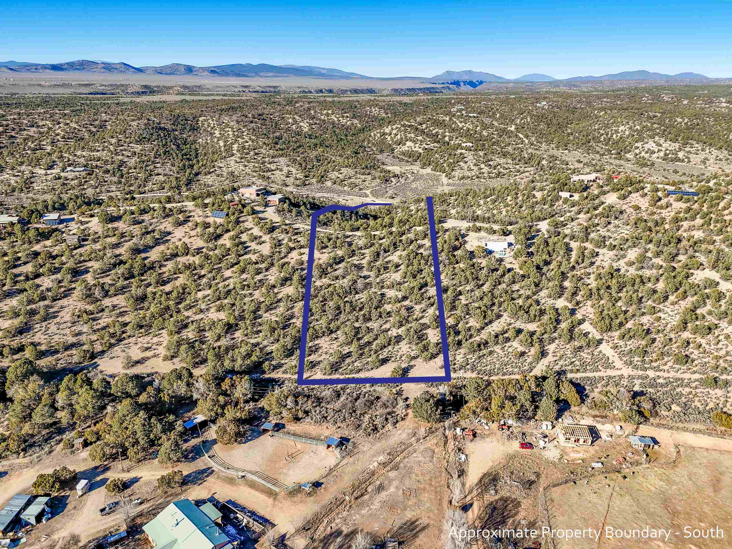 Beautiful south facing 3 acre parcel that starts at the ridge and runs down the hill to the valley below with views of Taos Mountain to the east, and the Truchas peaks to the south. Secluded and sunny - the perfect spot to build your home. Electric and Fiber optic at the lot.